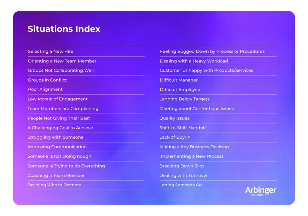Effective leadership team development should inspire a shift in mindset, which also means a different way of doing things. This leadership toolkit, for example, features some of the tools offered through Arbinger’s Outward Leadership program. They’re designed to operationalize common workplace scenarios so that leaders can approach difficult conversations, meetings, or situations in a more outward and empathetic way.